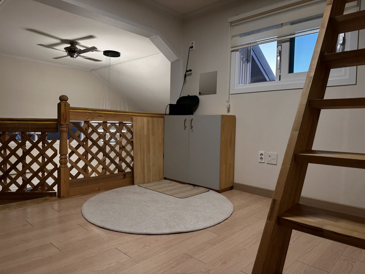 - 2์ธต(์ฝ 8ํ) : ๋ฐฉ 1๊ฐ / ์์ค 1๊ฐ + ๋ฏธ๋ ํ ๋ผ์ค ๊ณต๊ฐ