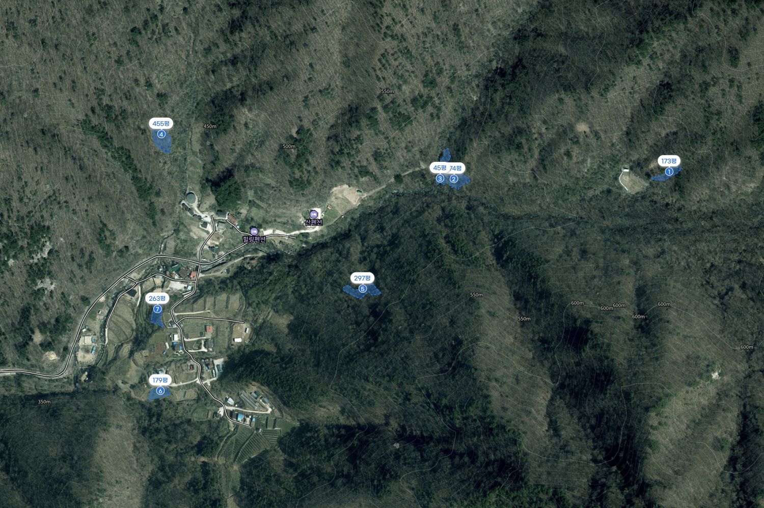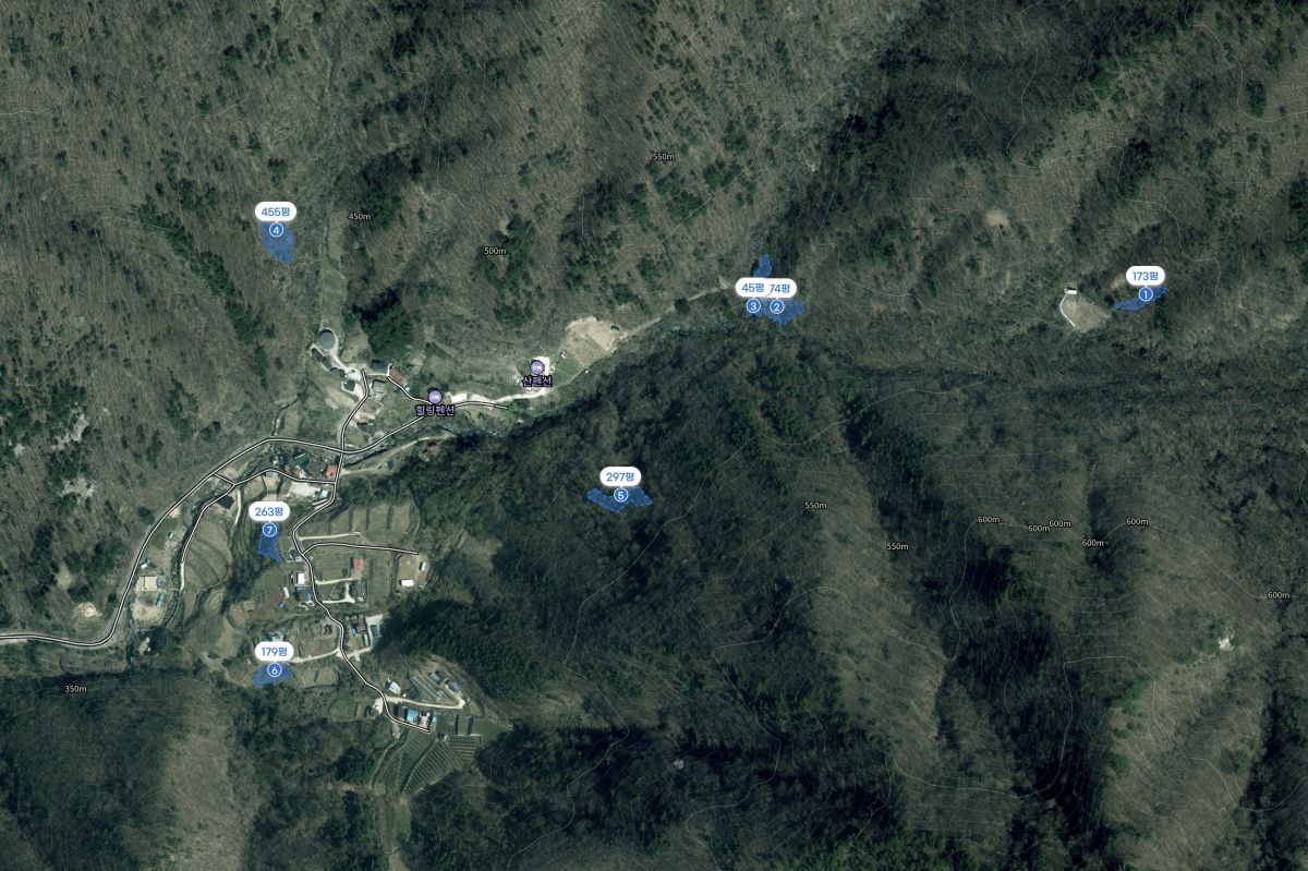 ์ฅ์๋ ๋ง์ ์ผ๋์ ์ด 7ํ์ง, 6,235ใก(์ฝ 1,886ํ)๊ฐ ์ฐ์ฌ๋ ํ ์ง ๋งค๋ฌผ์
