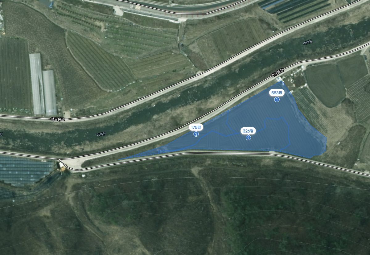 ์ค์ฒ๋ฉด ์์ฌ์ง์ ๊ฐ๊น์ด ์ด 3,582ใก(์ฝ 1,084ํ) ๊ท๋ชจ์ ํ์ง ๋์ง ๋งค๋ฌผ์