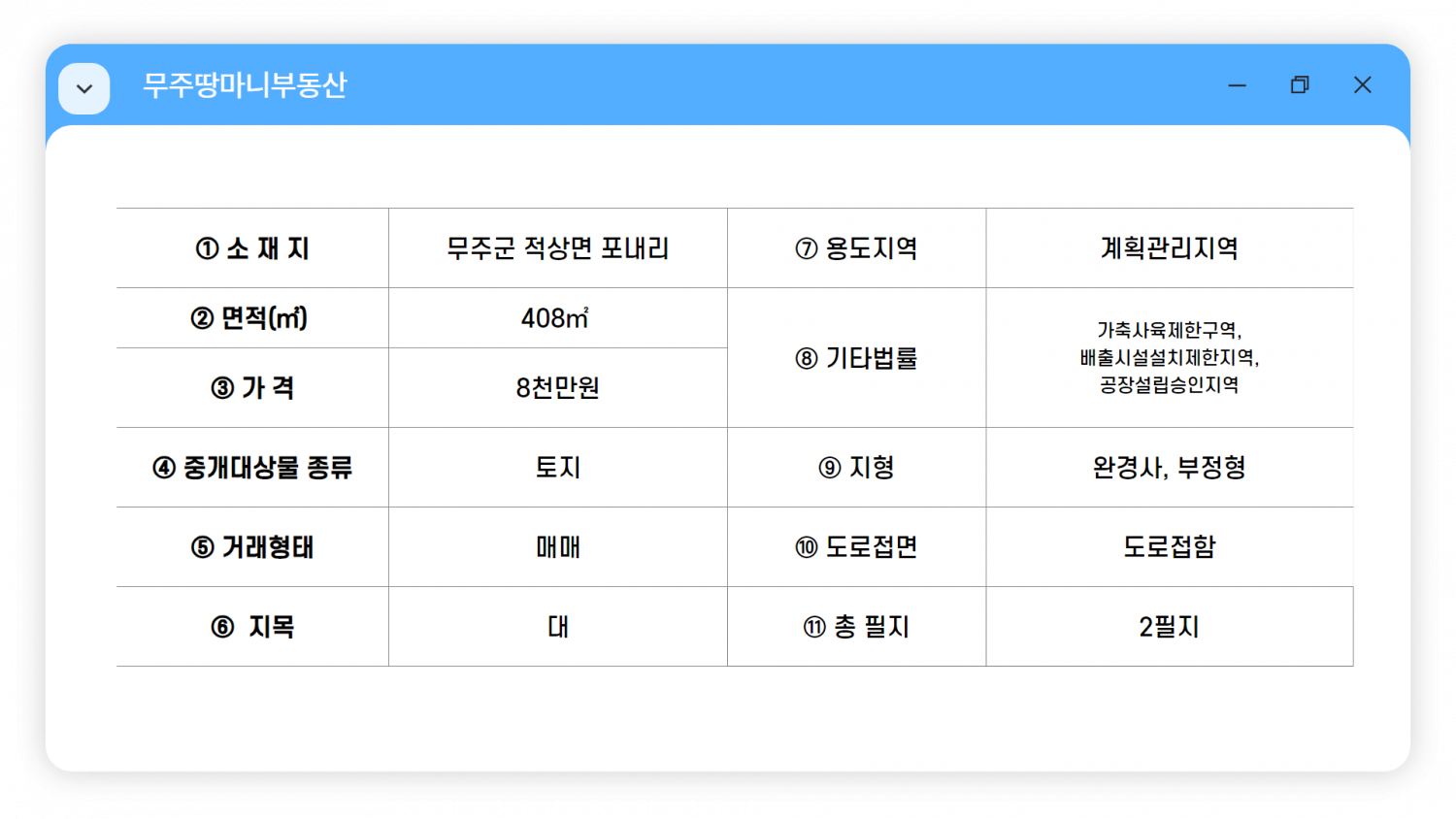 🔍 무주땅마니부동산 네이버 정보 보기 → 네이버 지도 링크