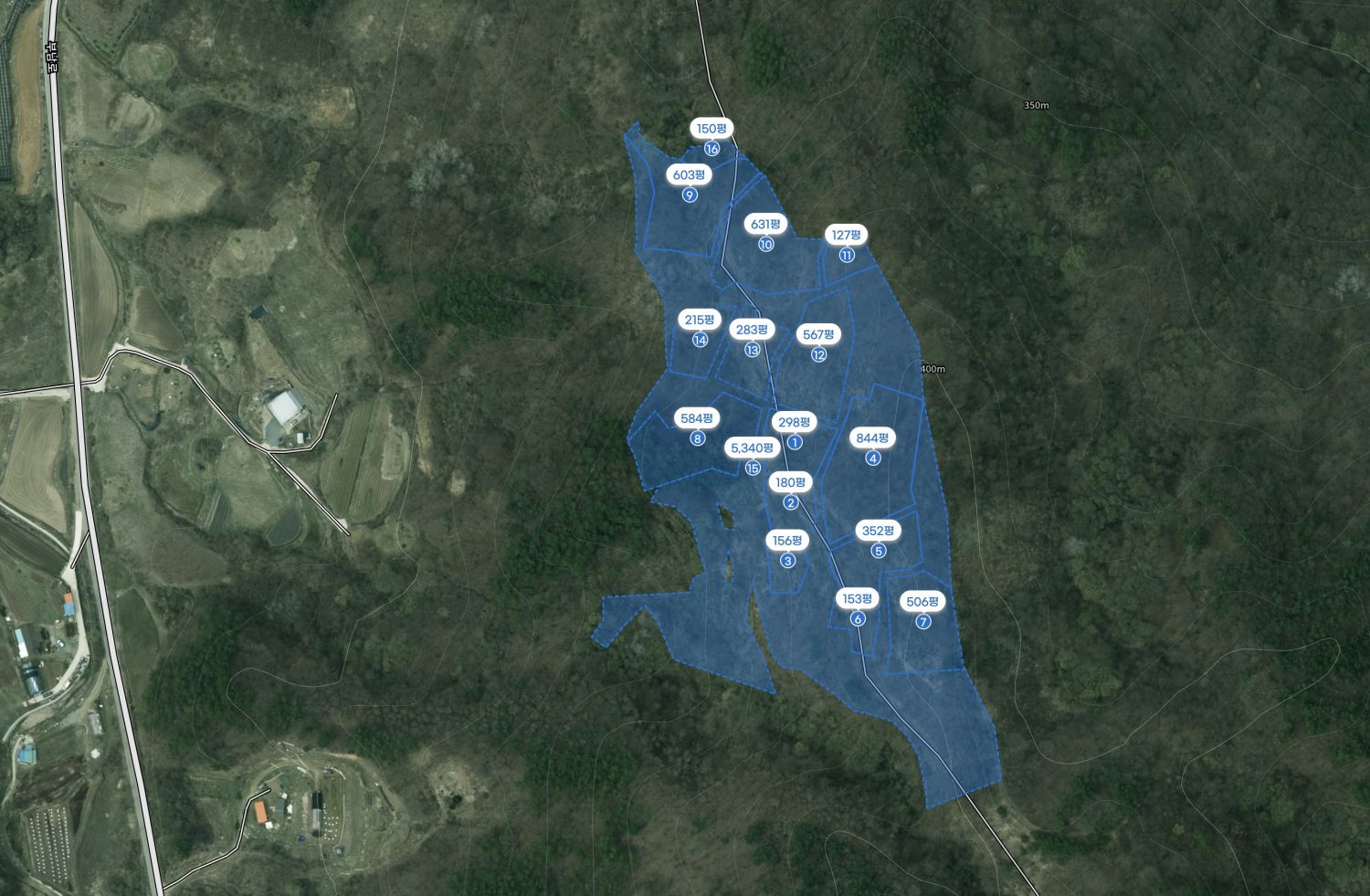์ด 16ํ์ง, 36,329ใก(์ฝ 10,989ํ) ๊ท๋ชจ์ ๋ํ ํ ์ง ๋งค๋ฌผ์